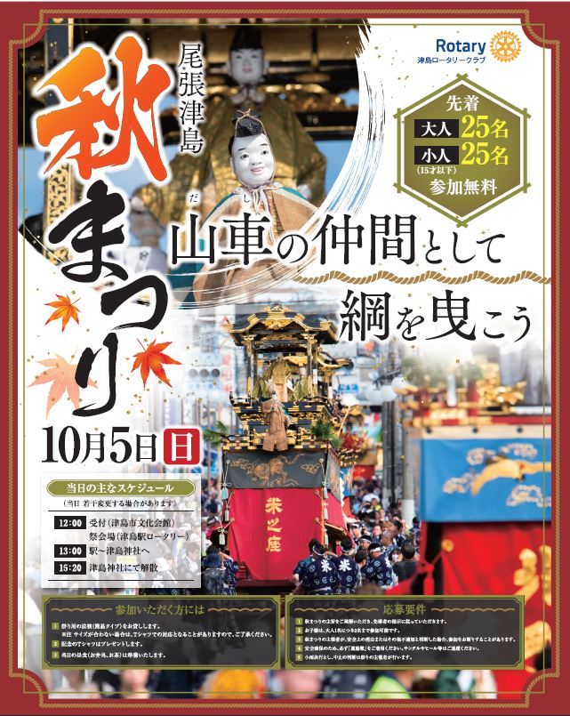 《主催》津島山車保存会 《共催》津島ロータリークラブ 《まつり主催》津島市